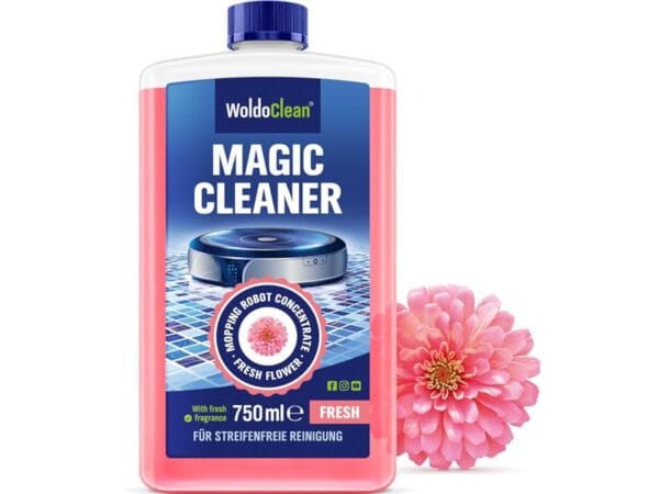 WoldoClean Robot Mop Cleaner Concentrate on moppaaville robotti-imureille suunniteltu puhdistuskonsentraatti, joka auttaa pitämään lattiat puhtaina ilman raitoja. Kukkaistuoksu jättää siivouksen jälkeen raikkaan ja miellyttävän tuoksun, mutta puhdistuksen pääroolissa säilyy siisti ja tasainen lopputulos.